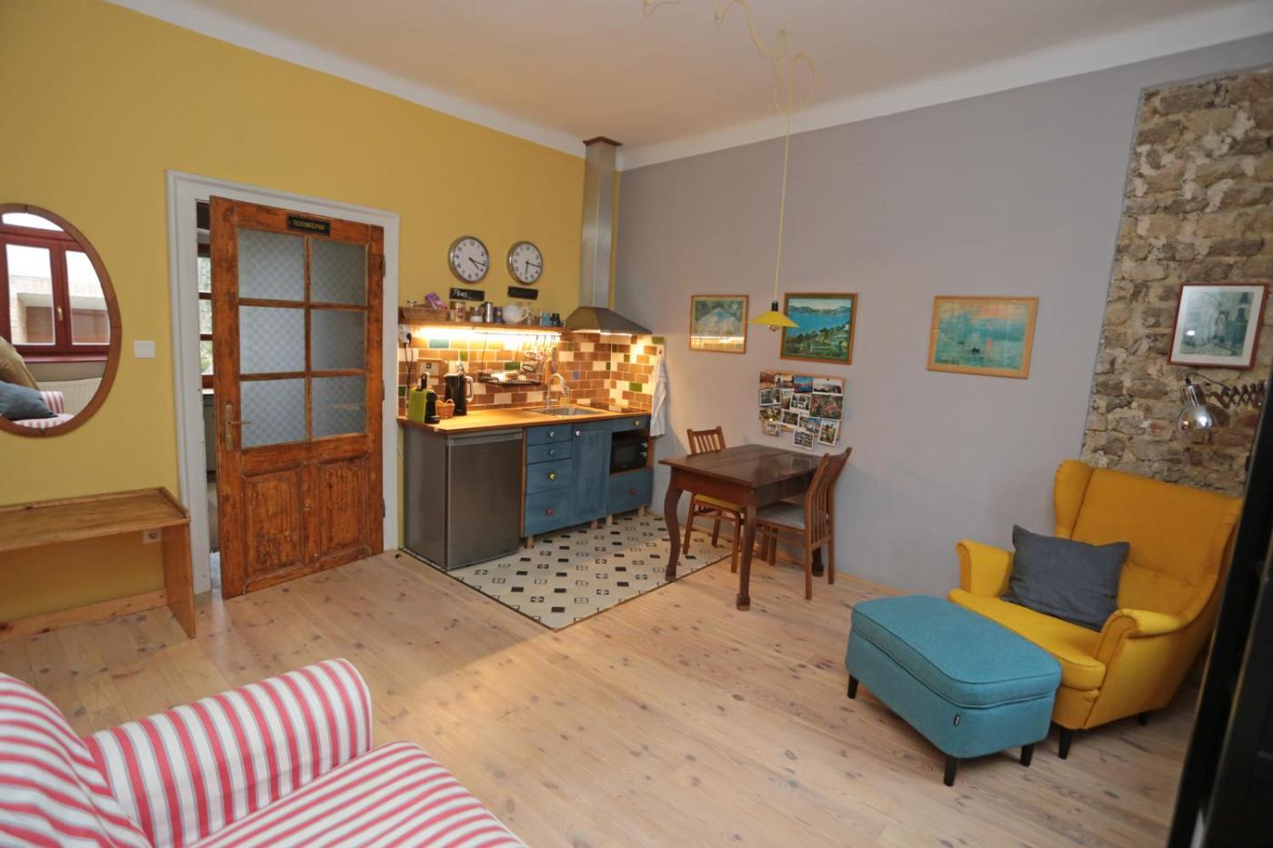 The air-conditioned apartment consists of 1 bedroom, a living room, a fully equipped kitchen with a microwave and a coffee machine, and 1 bathroom with a shower and a hair dryer. A private entrance leads gueststhe apartment,they can enjoy some fruits and chocolates or cookies. This apartment is allergy-free and non-smoking.